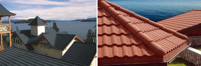 Living by the coast offers a choice to contrast with your environment or to harmonise with it. Our Gerard®Artic, Delta, Sapphire and Tanzanite blues can blend your roof into the sea beyond, as shown below left in our Heritage profile. In contrast, you could choose to stand out with the Mediterranean look of our Milano profile in Antico, Burgundy, Garnet, Rosso, Sienna or Terrocotta red (shown below left)